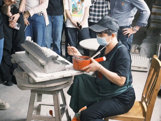 4月18日,美术设计与建筑学院非遗工作室师生在学院党委副书记、副院长黎海楠,院长助理叶振艳,学工办老师冯小桃、谢行发、冯宇婕三位老师的带领下,走进小榄“菊城陶屋”,开展岭南陶塑技艺传承调研活动。这座由省级非遗传承人何湛泉于1983年创立的陶艺基地,以“古法新承”为核心理念,为当代非遗活化提供鲜活样本。为深耕传统文化,拓展引领广度。通过田野调查,挖掘传统工艺的现代转化路径,为文化遗产课程开发积累实证案例。