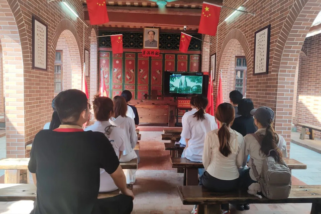7月8日,师生团队前往菉塘革命烈士陵园,向革命先烈鞠躬,深切缅怀为革命事业英勇献身的烈士们。随后,冯小桃老师带领师生们来到中共广州湾支部旧址参观学习。在旧址前,冯小桃老师带领党员师生庄严宣誓,重温入党誓词。通过参观历史图片、文物和复原场景,大家深入了解了广州湾支部在革命时期的艰苦斗争历程,深刻感受到共产党人的坚定信念和革命精神。活动最后,全体师生在支部旧址前合影留念。