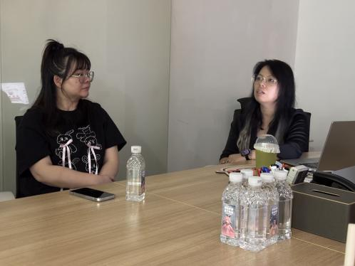 尹婷导演向珠海科技学院一行三人展示项目情况,并提出实习生需求