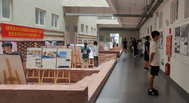 此次展览不仅是省级教改项目《建筑设计Ⅲ》课程教改成果优秀作品的集中亮相,更搭建了校园交流平台,有利于校内相关专业及感兴趣的其它专业的师生进行观展交流,相互沟通学习。展览现场集中展现了27份共80件学生优秀设计作品,吸引众多师生驻足观展。